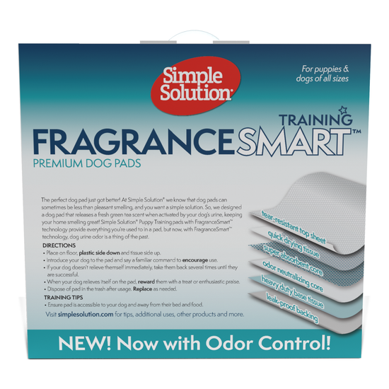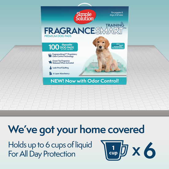 Although both Simple Solution All-day pads and training pads work great, there are a few differences. All-day training pads in general hold more liquid than a training pad. Choose an all-day training pad when you may have to leave your dog for longer periods of time, or if you have a larger adult dog. Training pads work great for housetraining puppies or for shorter duration needs.