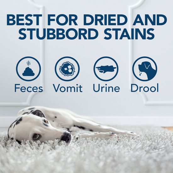 - Penetrates deep and fast to remove tough urine, blood, feces, and vomit stains.