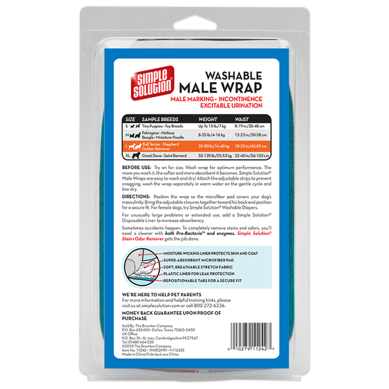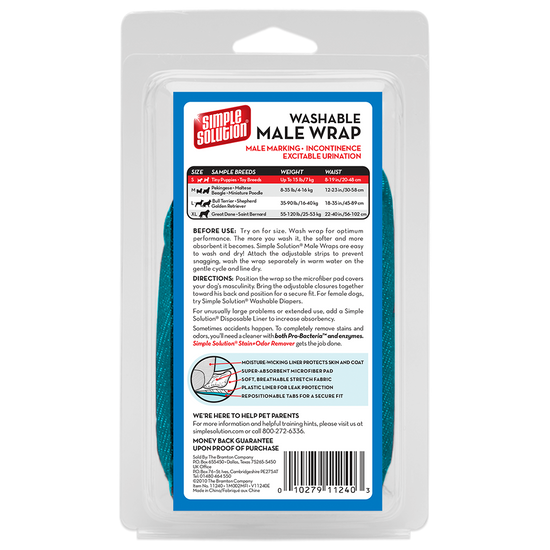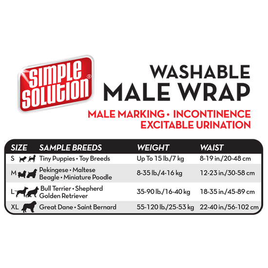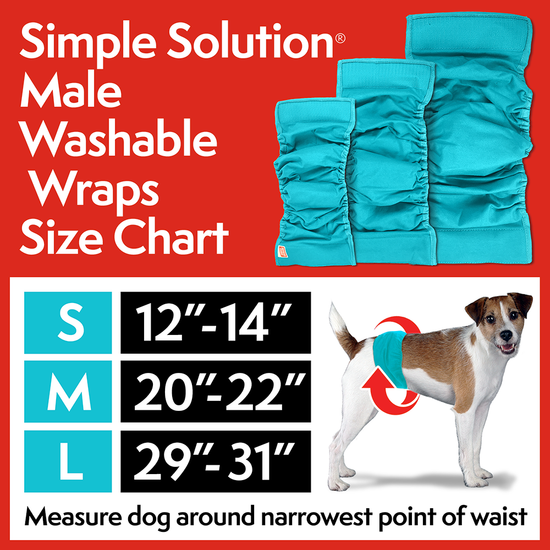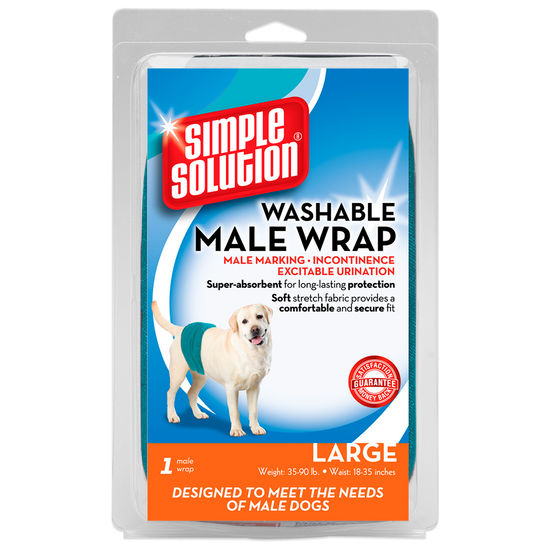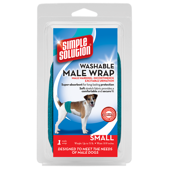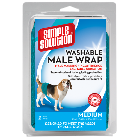 - Contains 1 machine-washable wrap per package. For female dogs, use Simple Solution Washable Female Dog Diapers.
