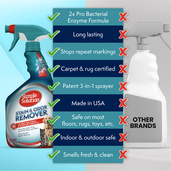 - Formulated to eliminate and neutralize tough dog and cat stains and odors like urine, feces, and vomit