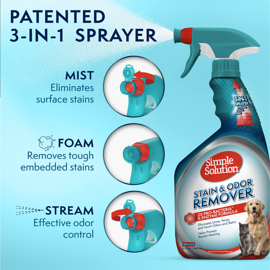 - Our patented 3-in-1 nozzle sprayer gives you more options to tackle stains and odor: stream, foam, or mist.