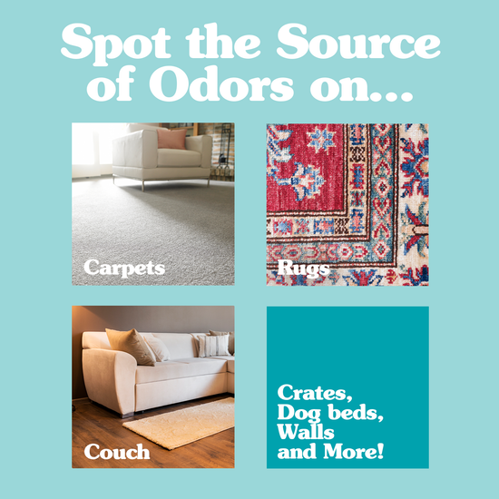 - Can be used on carpets, rugs or furniture material to find sources of pet odors in the home.